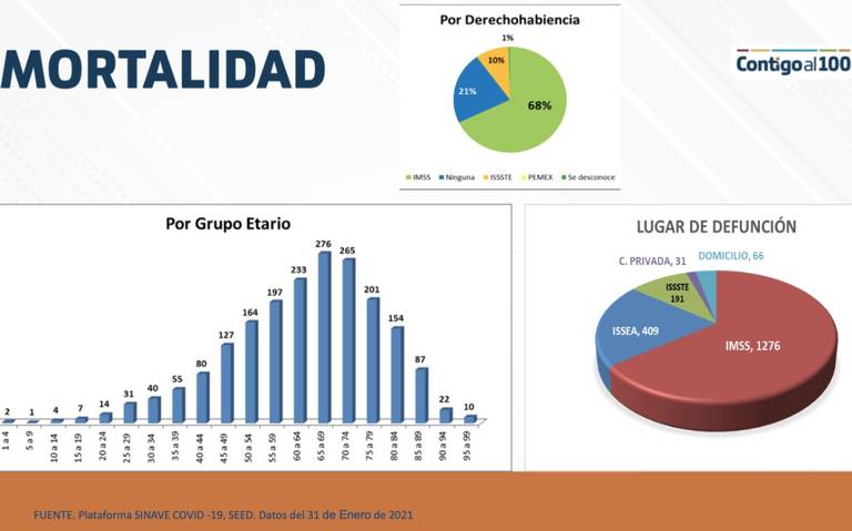 Hasta el momento, y pese a que los jóvenes son aún quienes mayormente resultan contagiados y son, por ende, quienes se convierten los transmisores, quienes cuentan entre 65 a 69 años concentran la mortalidad por esta causa, seguidos de los adultos mayores de 70 a 74 años.